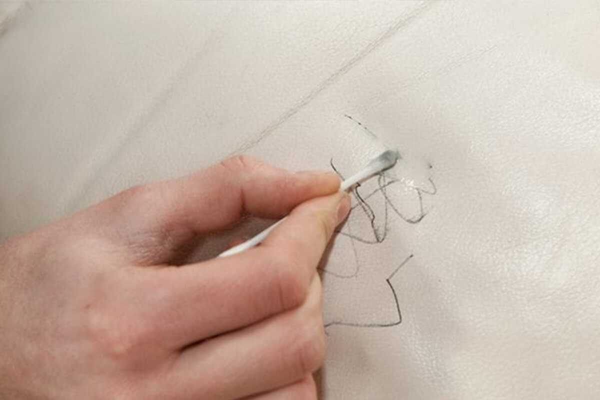 Справиться с черточками от шариковой ручки поможет обычная спичка. В спичечной головке содержится сера. Влажной губкой протирают экокожу, чтобы ее смочить. Следы от ручки трут серным концом спички. После процедуры все остатки удаляют мыльным раствором и протирают насухо.