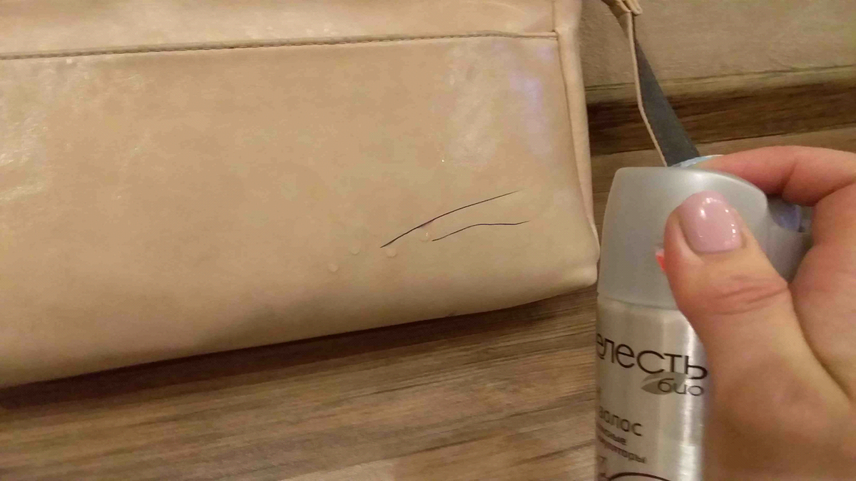 Самый безопасный способ того, как оттереть пятна с кожзама – использовать обычное хозяйственное мыло и теплую воду для ополаскивания обработанной поверхности. Обильный слой мыльного раствора поможет избавиться от свежих загрязнений. С тем, как вывести пятно от ручки с кожзаменителя, отлично справляются опытные мамы. Загрязненная чернилами поверхность сбрызгивается лаком для волос. Средство нельзя надолго оставлять на диване, куртке или ботинках, иначе лак высохнет и образует неприятные чернильные разводы. После процедуры нужно протереть поверхность мягкой тряпкой. Если с первого раза не помогло, можно повторить еще раз.