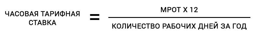 Рассчитать часовую тарифную ставку из МРОТ при 40-часовой рабочей неделе полагается по формуле: