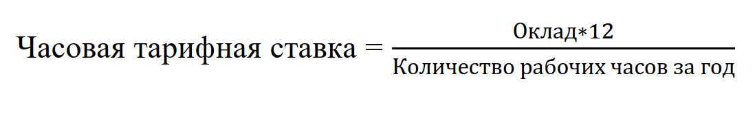 Формула, как рассчитать часовую тарифную ставку на 2023 г.:
