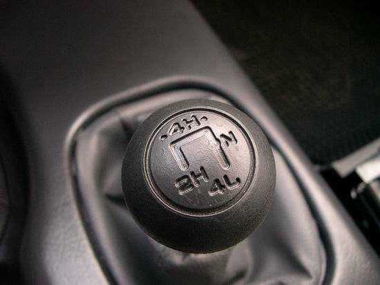 - Рычаг переместился вперед и направо. Такая позиция говорит о подключенном приводе передка. Заметим, что пониженная передача все равно остается неактивной. Данный режим весьма эффективен на скользком покрытии или при преодолении легкого бездорожья.