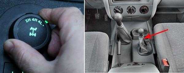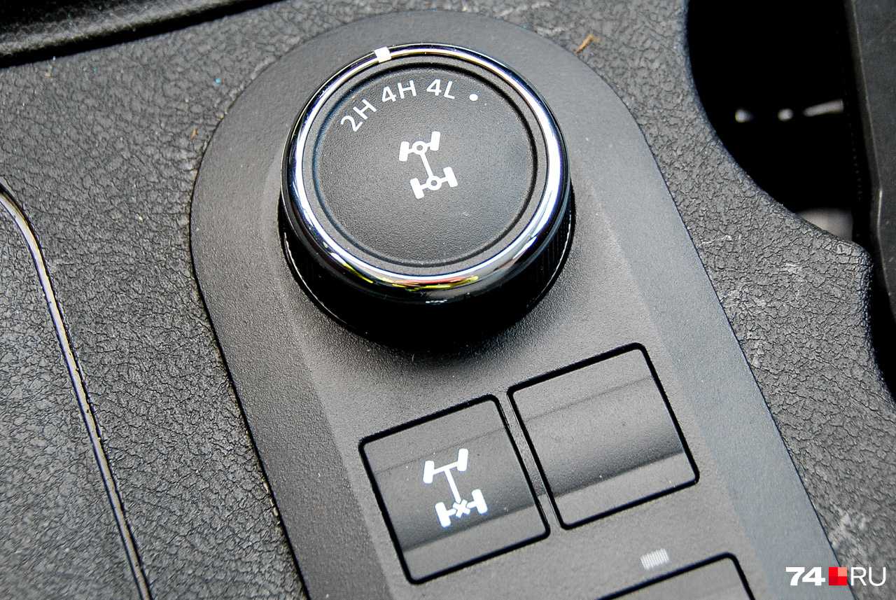 - Если рычаг включить, то раздаточная коробка начнет распределять момент уже между двумя осями.