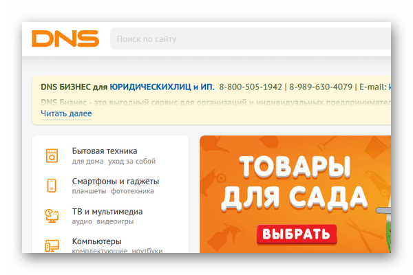 Онлайн-магазин DNS-Shop предлагает покупателям большой ассортимент разнообразной техники для дома и цифровые устройства. По адресу https://www.dns-shop.ru пользователи просматривают каталог и осуществляют покупку.