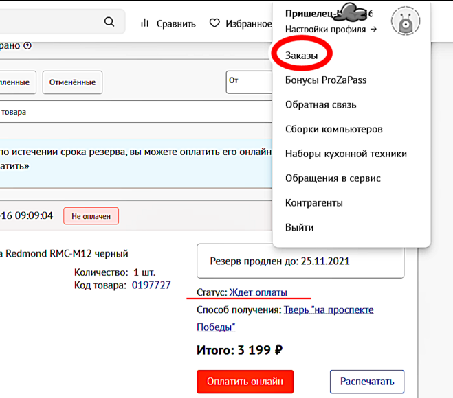 Когда авторизуетесь, кликните на значок пришельца в верхней части сайта, выберите раздел «Заказы» и должен отобразиться ваш заказ. Рядом с товаром будет статус заказа: