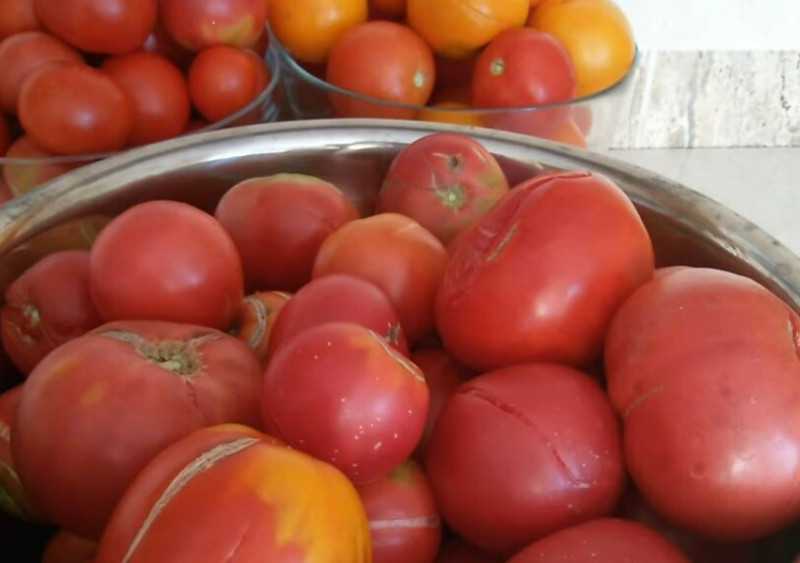 - любые — (упавшие, переспевшие, лопнувшие и т.д.), из которых будем делать томатный сок для заливки.