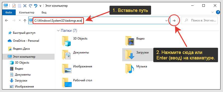 Зная, что за запуск отвечает файл , можно открыть стандартную системную утилиту через проводник: введите прямой путь к файлу () в адресную строку вверху и нажмите Enter на клавиатуре или стрелку справа от строки ввода.