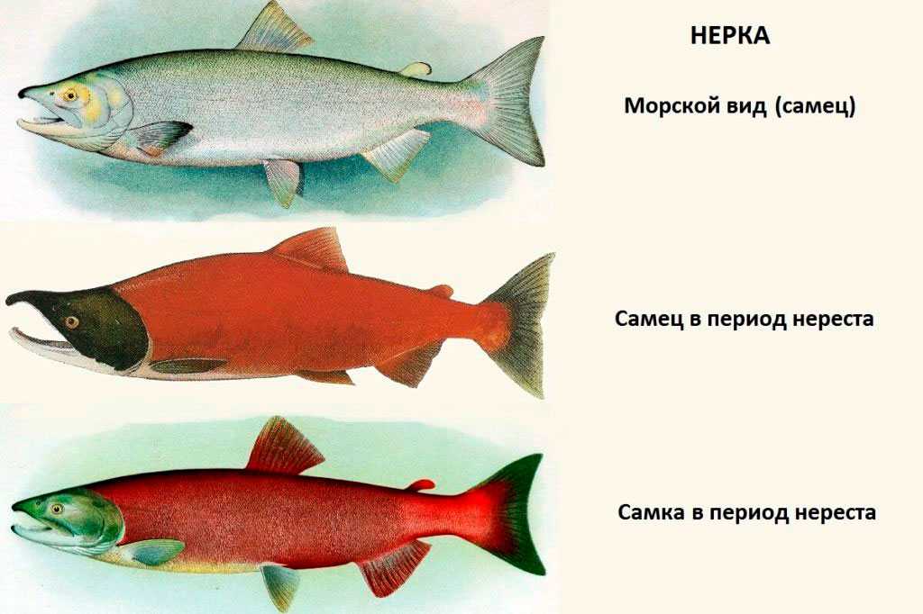 По внешнему виду эти лососевые напоминают кету. Длина — до 80 см, вес — до 4 кг. Распространена в основном возле Аляски и Камчатки. Нереститься предпочитает в озерах. Брачный окрас — ярко-красный, с зеленоватой головой. Мясо нерки также интенсивно красного цвета, так как основу ее питания составляют красные рачки.