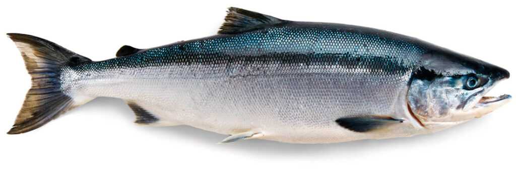 Именно лосося можно считать самым полезным видом красной рыбы. Живет он вдоль побережий Североатлантического и Тихого океана, его разводят в Великих озерах Северной Америки. Лосось – крупная рыба с нежным вкусом. Её стандартные размеры 70 см. в длину при весе около 4 кг. У лососины очень мягкий и нежный вкус. Цвет мяса может быть от оранжевого до ярко-красного, в зависимости от места обитания, питания и прочих факторов. Калорийность лосося 153 Ккал, из которых белки – 20 гр., жиры – 8,1 гр., углеводы – 0 гр.