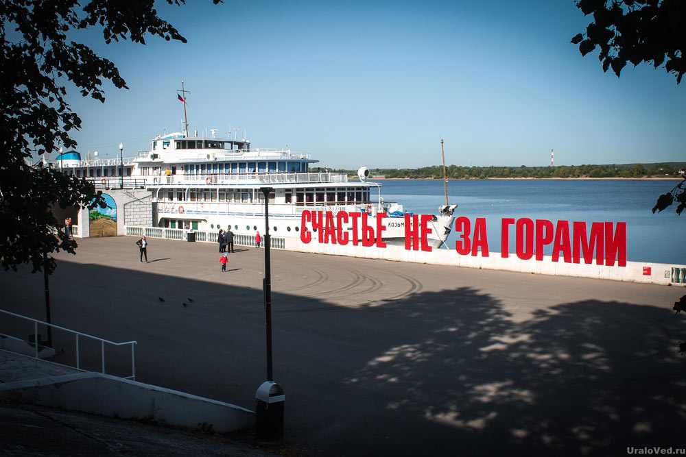 В городе Перми можно прокатиться на прогулочном теплоходе. Также отсюда ходят большие пассажирские теплоходы до Волги. Около бывшего Речного вокзала расположен самый известный и популярный арт-объект Перми – «Счастье не за горами».