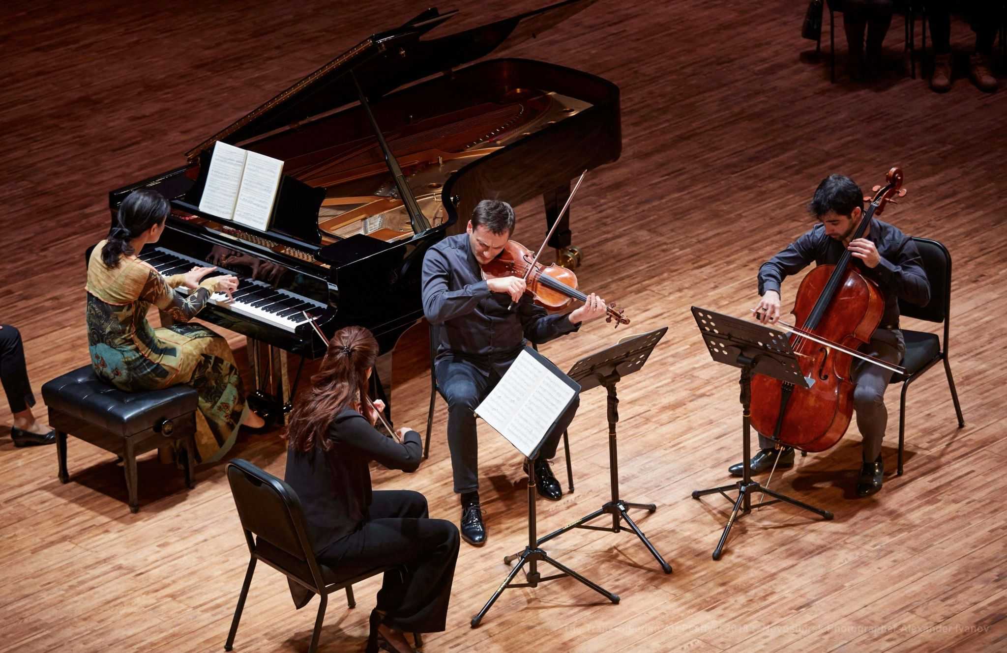 То же трио может включать в себя и пианино с тем же составом, что и при предыдущем варианте, но альта в него не входит. Скрипка, виолончель и альт, дополненные фортепиано именуются фортепианным квартетом. То же пианино вместе со струнным квартетом дает фортепианный квинтет.