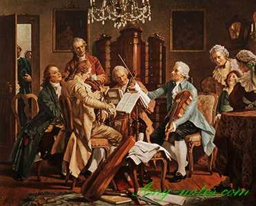 Как только музыка вышла за пределы церкви, сразу же возникло большое количество новых музыкальных жанров. Музыка сопровождала ее любителей по жизни, она звучала не только в театре или на концерте, но и во время прогулки, охоты, пира и так далее. В XVIII веке очень популярным были увеселительные прогулки на небольших кораблях — ботах. Отсюда появился необычный музыкальный жанр – «музыка на воде». В теплую и солнечную погоду музыка звучала в парках, так появилась пленэрная музыка. Но наибольшее распространение получила камерная музыка, при исполнении которой участвовало небольшое количество музыкантов. Слово camera латинского происхождения и переводится как «комната, палата». Каждая партия камерного сочинения исполняется одним инструментом