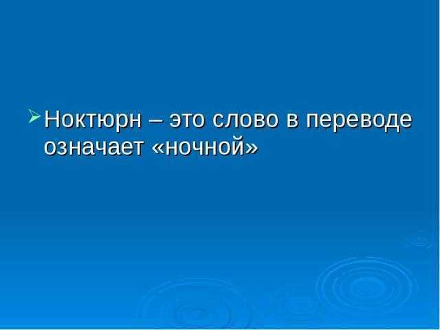 Ноктюрн – это слово в переводе означает «ночной» Ноктюрн – это слово в переводе означает «ночной»