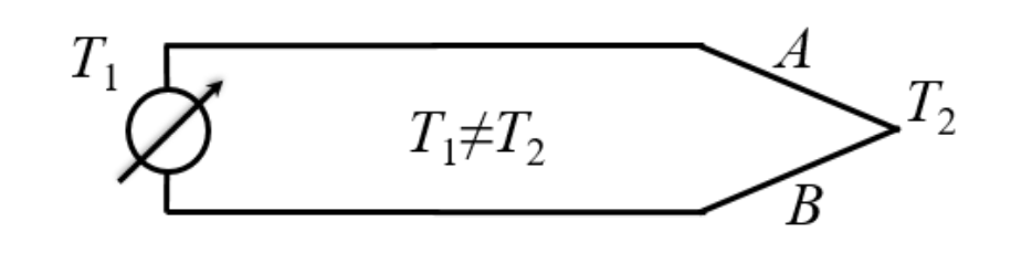 Эффект Зеебека. В замкнутой цепи, состоящей из последовательно соединенных разнородных полупроводников, места соединения которых находятся при различных температурах ∆T≠0, возникает электрический ток, который называется термоэлектрическим. На концах такой разомкнутой цепи появляется разность потенциалов Uт, которая носит название термоЭДС. Величина этой разности потенциалов характеризуется коэффициентом α.