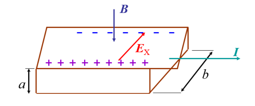 Гальваномагнитный эффект Холла. Если пластину полупроводника, вдоль которой течёт электрический ток I, поместить в магнитное поле B, направленное перпендикулярно направлению тока, то в полупроводнике возникнет поперечное электрическое поле Е, направленное перпендикулярно току и магнитному полю.