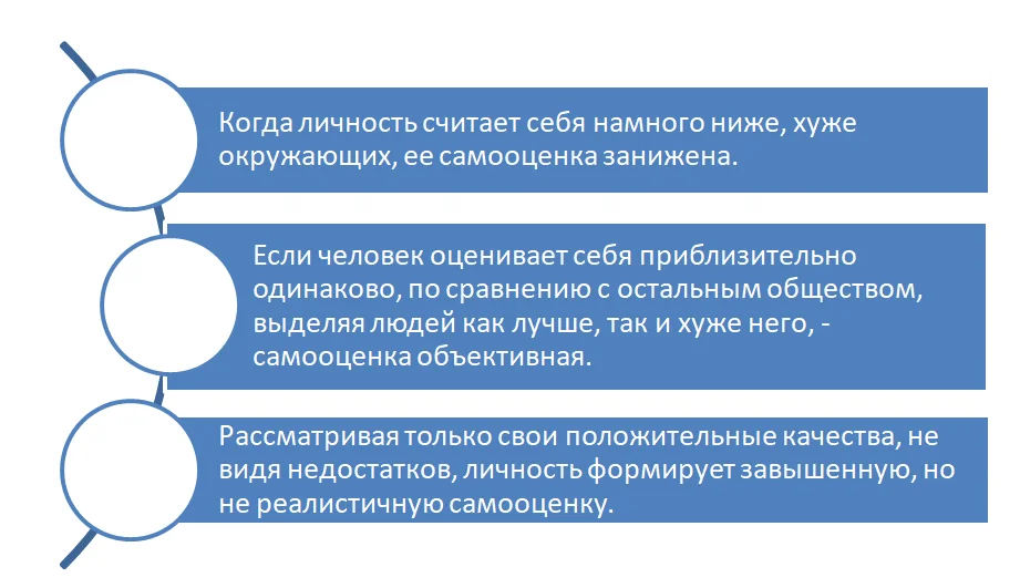 - Самооценка. Личность может отличить себя от остального общества и оценить собственную деятельность, внешность, привычки и другие особенности. Самооценка складывается в процессе сравнения себя с другими.