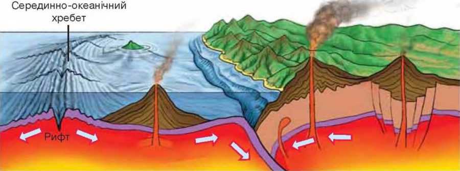 На границах литосферных плит находятся обширные складчатые горные системы.