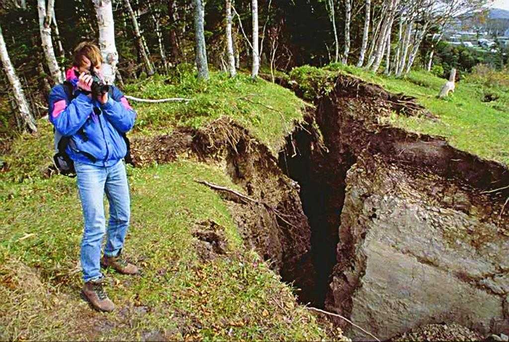 В область кайнозойской складчатости в России входят Альпийский (на юге) и Тихоокеанский (на востоке) пояса. Правда, к Альпийскому поясу относится сравнительно небольшая область России — Кавказские и Крымские горы, образовавшиеся около 5–10 млн лет назад (рис. 41). В Тихоокеанский пояс (Тихоокеанское Огненное кольцо), который окаймляет океан почти со всех сторон, в пределах России входят горы Камчатки, Сахалина и Курильских островов. Горообразование здесь продолжается и в наше время. Оно сопровождается сильными землетрясениями (рис. 42) и частыми извержениями вулканов.