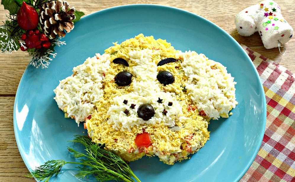 Самый популярный салат в России уже давно приобрел свой стереотипный вид, однако давайте попробуем его развеять и придумать, чем же его можно украсить. Поскольку оливье является одним из основных символов Нового Года, то эту отсылку можно использовать и в праздничном дизайне блюд.