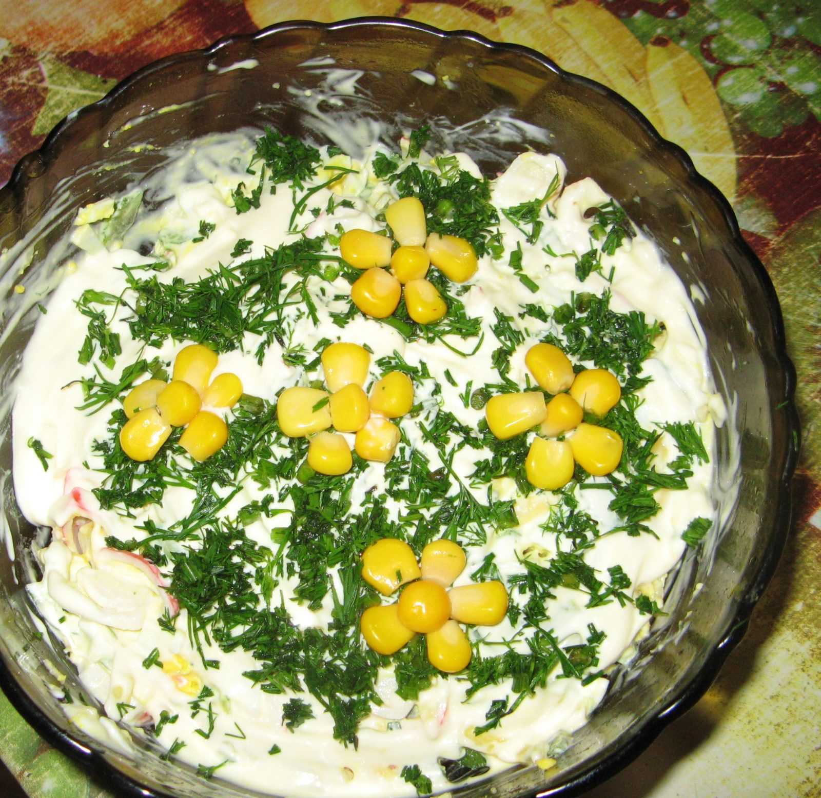 В холодильнике заправленный салат хранить не более 12 часов.