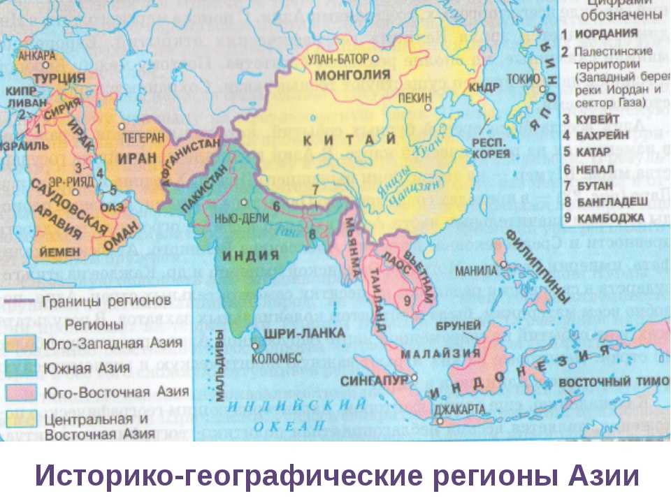 Южная Азия: Афганистан, Бангладеш, Бутан, Индия, Мальдивы, Непал, Пакистан, Шри-Ланка.Традиционно принято считать, что Восток — это Азия и Африка.Какая тут логика? С Азией все более-менее понятно. Африка, вероятно потому, что Северная часть Африки (Магриб) населена арабами, когда-то распространившимися по свету из Аравийского п-ова.Они исповедуют преимущественно ислам (с 7-го века н. э.).Ислам одна из мировых религий. Очень распространена (наряду с христианством и местными верованиями) и в странах Черной Африки (к югу от Сахары).![]()