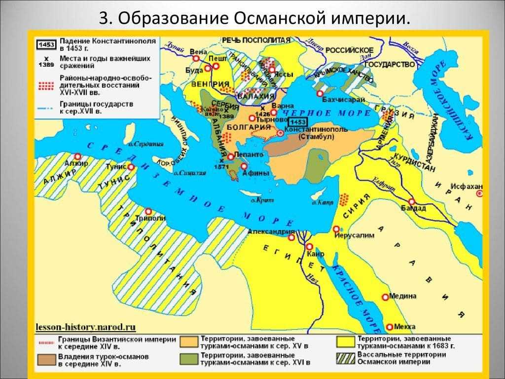 В 1453 году был захвачен Константинополь — столица Византийской империи. С той поры и до сегодняшнего дня она носит свое турецкое название — Стамбул. В XV веке были присоединены османами территории Балканского полуострова, Крыма, большая часть Арабского востока, территории Северной Африки. В середине XVI века, в период правления султана Сулеймана, Османская империя достигла, наверное, вершины своего могущества.