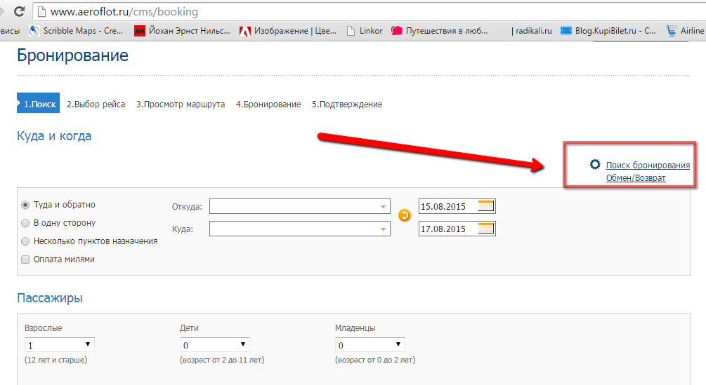 - Выбирайте «Поиск бронирования/Обмен/Возврат»