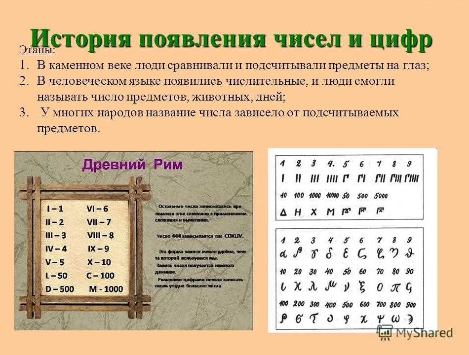 Римские цифры появились 2500 лет назад. С небольшими числами эта форма записи вполне удобна, но для записи больших чисел очень сложна. И с ними неудобно проводить вычисления. Сейчас римские цифры тоже применяют, например, в записи века, порядкового номера монарха и т.п.