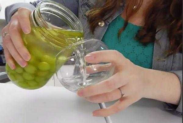 - Винным сиропом заливают виноградинки, закрывают емкость, настаивают 12-14 часов.