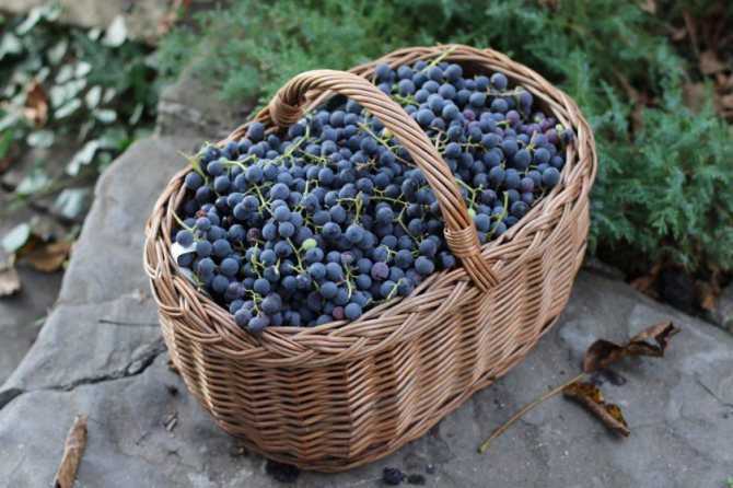 Виноград должен созревать как можно дольше поскольку зеленые ягоды не сохранятся и одной недели. Собирайте плоды только в дневное время, так как утром и вечером на ягодах собирается роса. Она препятствует сохранению упругости оболочки и полезных веществ.