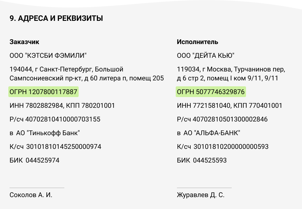 ОГРН является основным идентификатором юридического лица, который указывается в любых документах. Например, если вы заключаете договор с контрагентом, в реквизитах нужно прописать уникальные номера: собственный и подрядчика: