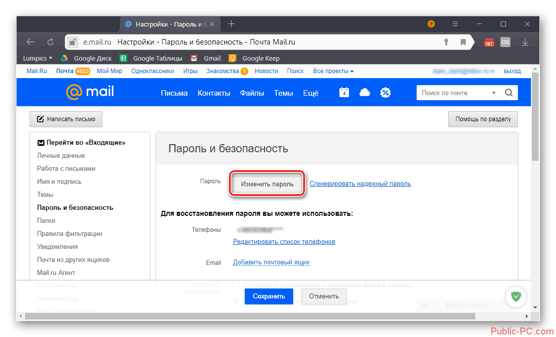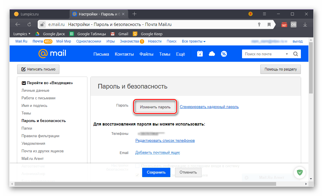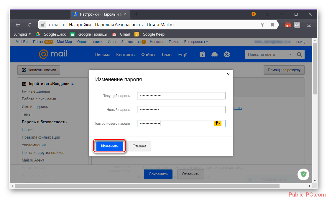 Подробнее: Изменение пароля от электронной почты Mail.ru