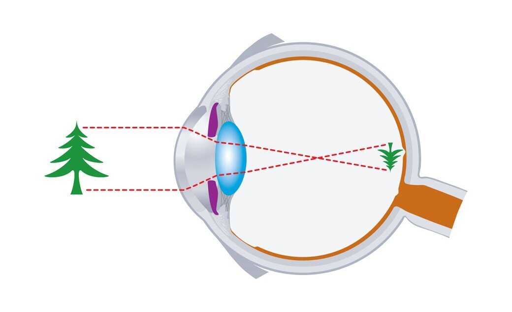 У близорукого глаза изображение получается внутри глаза впереди сетчатки.