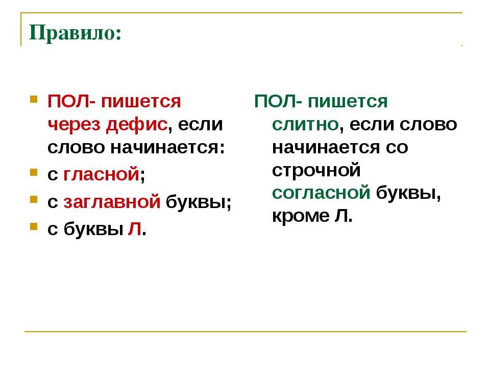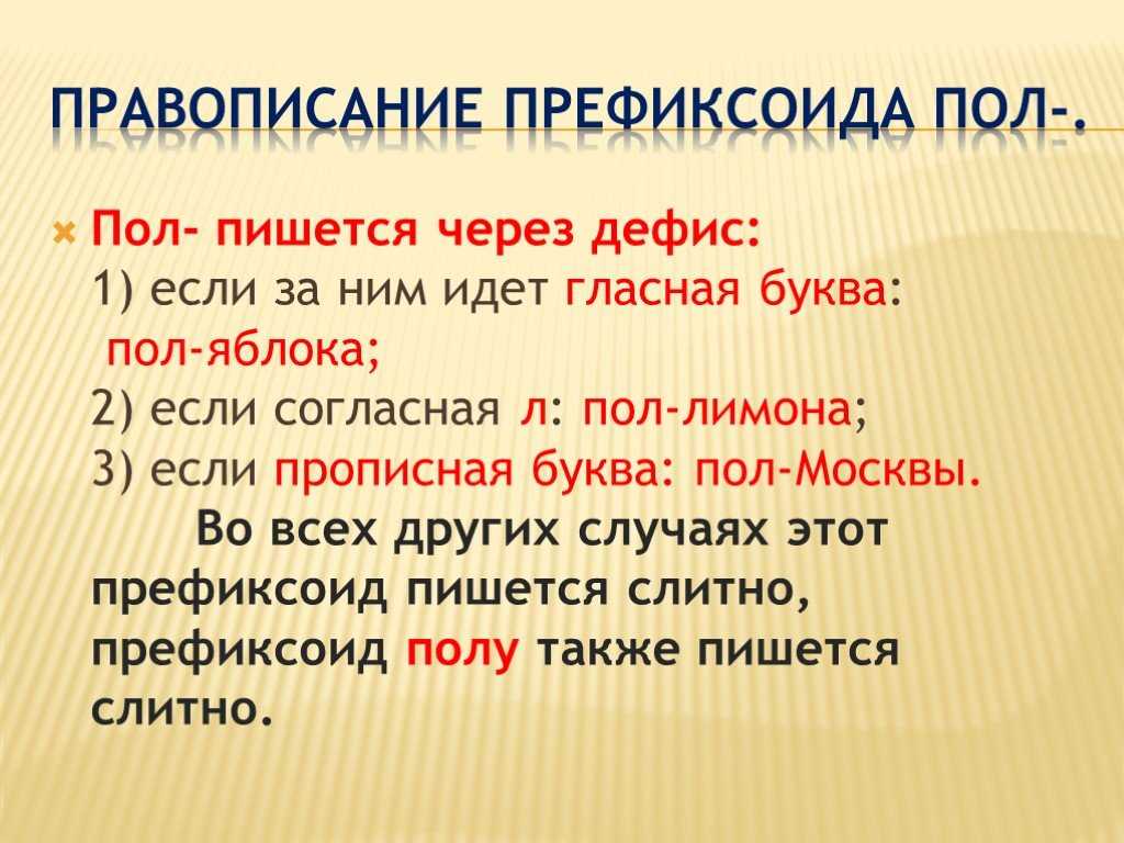 • половина – сокр.: полу… / пол… (например: полумесяц)