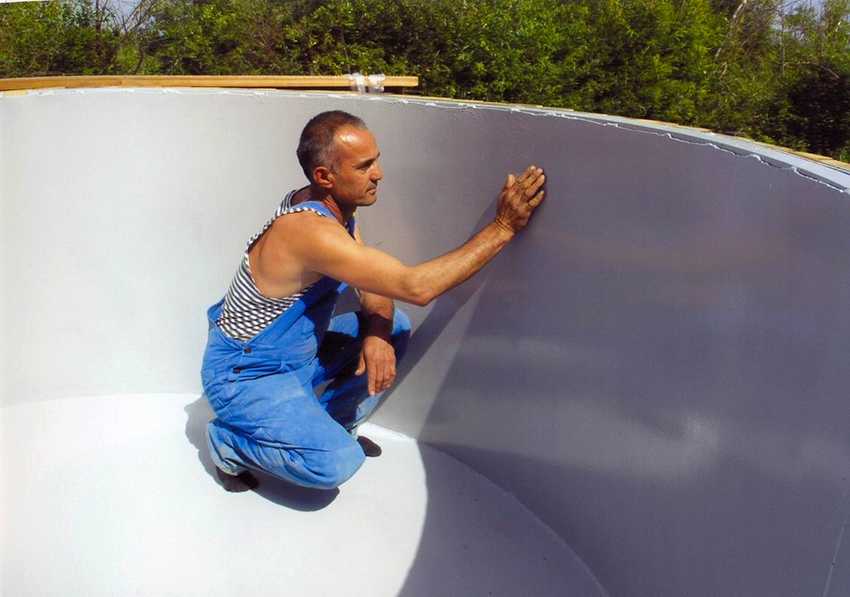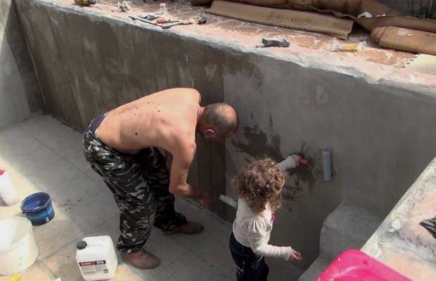 Стенки бассейна нужно гидроизолировать с обеих сторон, пол только изнутри. Внутри технология пропитки такая же, как и у подвала, один к одному.
