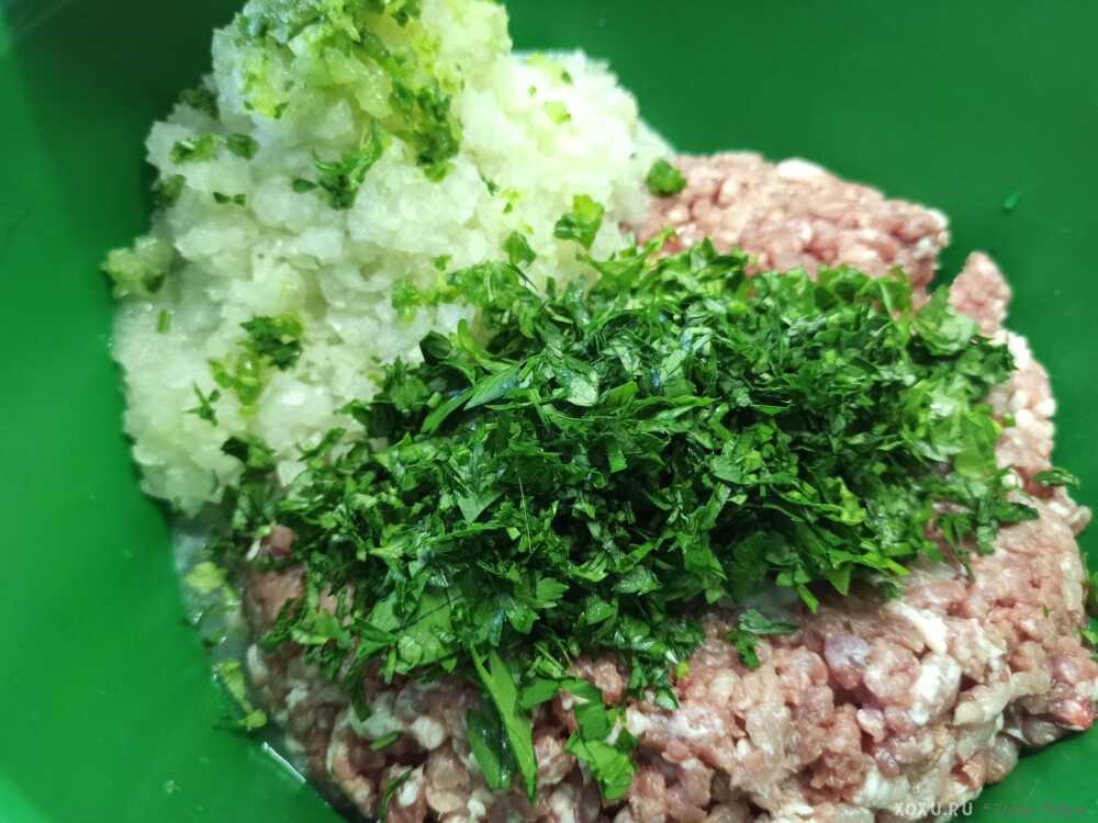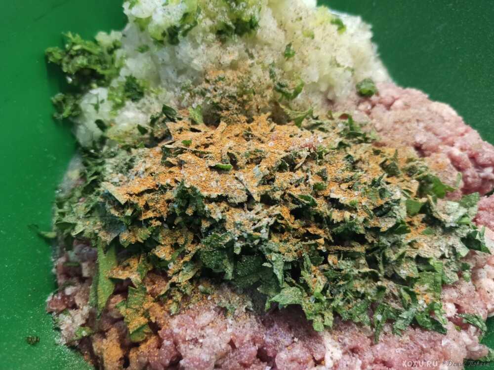 Для придания блюду неповторимого аромата добавите в фарш по вкусу кинзу, петрушку или мяту. Можете использовать смесь грузинских трав – и тогда Ваше блюдо будет невозможно отличить от традиционного, сделанного в Грузии.