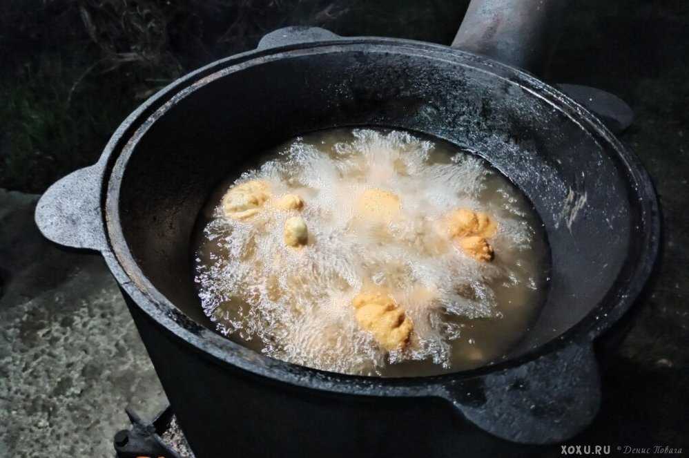 Важно, чтобы масло бурлило. Принцип приготовления как и чебуреки