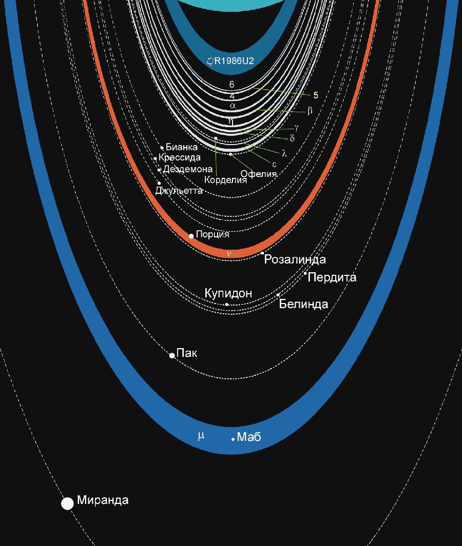 Уран имеет 27 постоянных естественных спутников, которые отличаются меду собой диаметром, составом и орбитами вращения вокруг планеты.