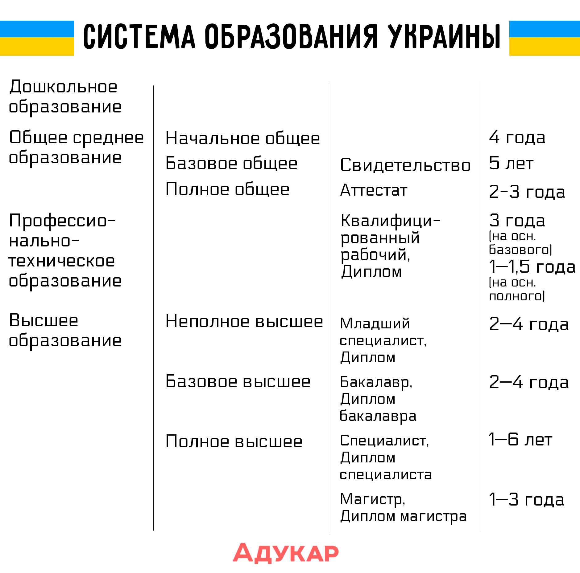 Как и в большинстве стран СНГ, школьное обучение в Украине имеет 3 ступени: