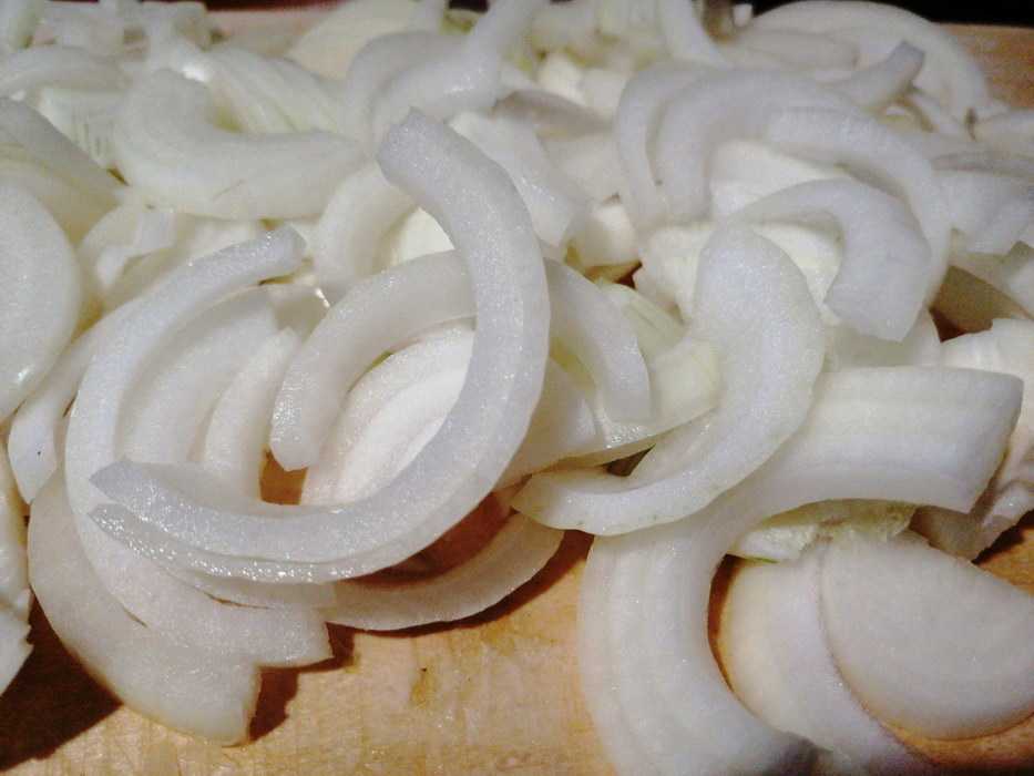 Я не всегда использую овощи, вот и сейчас, готовлю требуху без них. Если с овощами, то очищенный репчатый лук нужно будет нарезать полукольцами, морковь натереть на крупной терке.