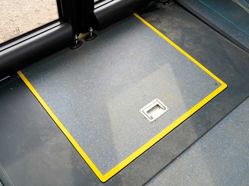 На накопительной площадке размещены три откидных сиденья. А вот конструкция поручней в задней части немного озадачила — боковые сиденья на подиуме, под которым и спрятан электромотор, получились огороженными. Не любой пассажир сможет легко взобраться и выбраться. Явно это место облюбуют подростки.