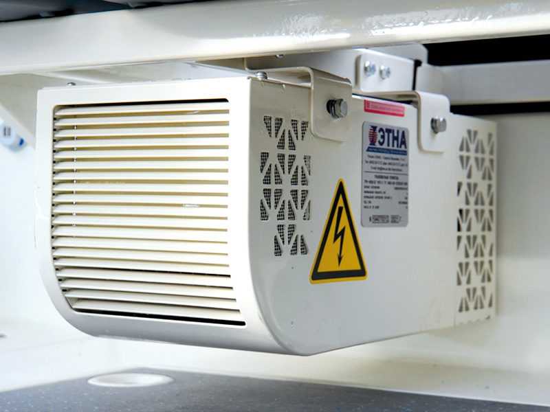 Возле накопительной площадки под сиденьями, в передней и задней частях салона стоят отопители производства НПФ «Этна» из Саратова. Естественно, все три не в состоянии противостоять проникающему через открывающиеся двери морозу, поэтому в помощь предусмотрен климат-контроль с поддержанием заданной температуры. Помимо этого, на сиденье кондуктора возле средней двери установлен индивидуальный подогрев электротеном.
