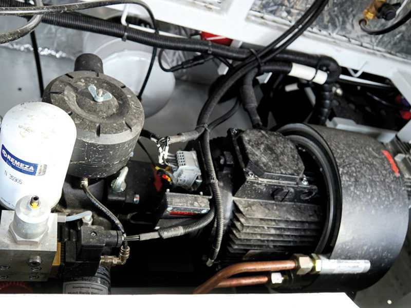 Тяговый электромотор ДТА-3У1 на 170 кВт Псковского электромашиностроительного завода размещён в задней левой части кузова. В заднем отсеке с улицы можно обслуживать только компрессор, регулятор давления, системы пожаротушения и влагоотделитель. В запираемой снаружи нише в левой передней части доступ к гидроусилителю руля.