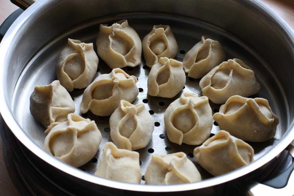 - При отсутствии «мантышницы» можно сварить порционно (примерно 5 шт.) на водяной бане дуршлагом, смазанным маслом и поставленным на кастрюлю с кипящей водой. После закипания нужно накрыть его крышкой подходящего диаметра — через 40–50 мин. будут готовы.
