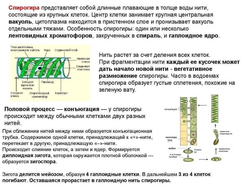 Жизненный цикл спирогиры включает в себя несколько фаз: