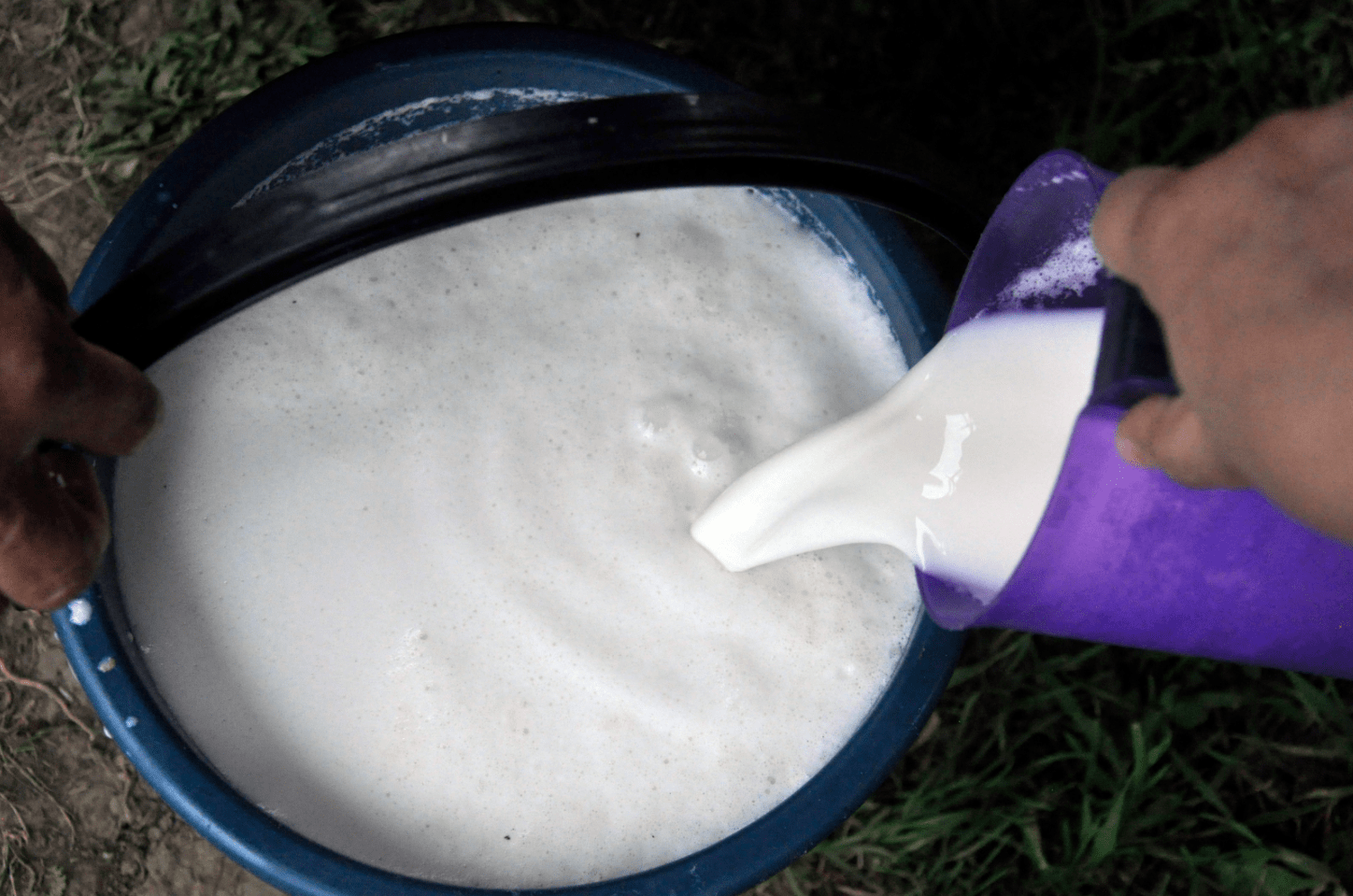 - Приготовление закваски. Молоко сливают в деревянный бочонок, куда добавляют закваску из уже вызревшего напитка.