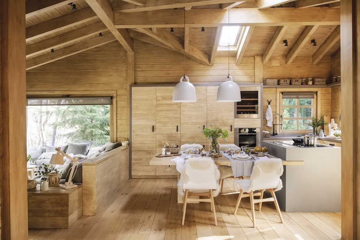 Дом имеет свои преимущества – немалый простор. Есть возможность организовать пространство с панорамными окнами и выходом в сад. А внутри создать несколько функциональных зон: кухню, обеденную зону и зону отдыха.