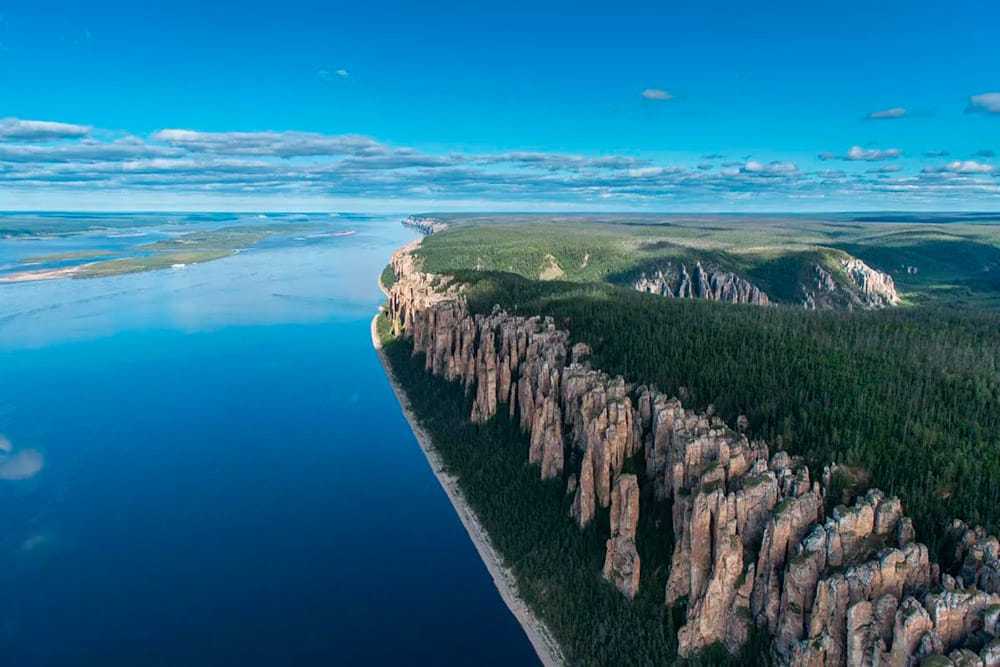 На правом берегу р. Лена расположился национальный парк «Ленские столбы» – совокупность вертикально расположенных вытянутых скал. С давних времен это необычное место эвенки и якуты считали священным. Они верили в то, что эти скалы – застывшие человеческие фигуры, которые были созданы потусторонними силами. Поэтому кроме шаманов и старейшин никто не решался приблизиться к загадочным образованиям. Парк растянулся вдоль речного берега на территории Якутии на несколько километров. Он считается национальным природным объектом и является особо охраняемой природной территорией.