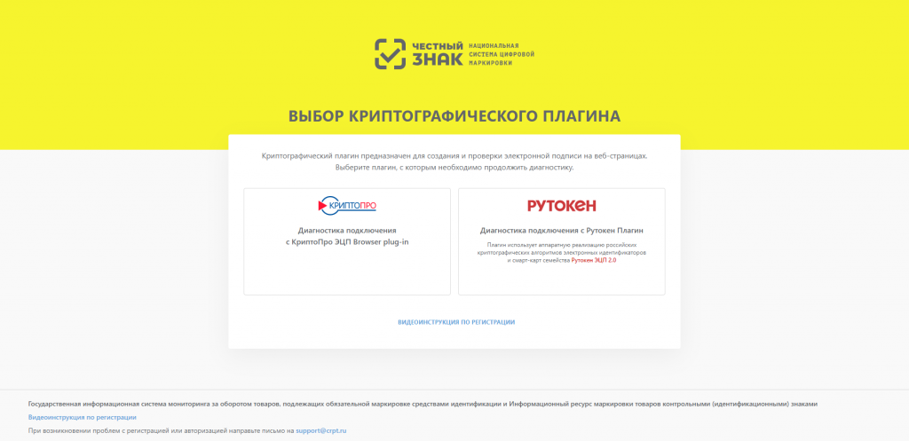 Перед регистрацией в Честном Знаке нужно, чтобы уже была настроена электронная подпись и все программы для неё установлены. Если это не сделано, то на сайте существует удобный инструмент проверки компонентов.