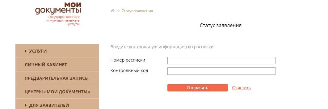 Каждый человек вправе благодаря имеющемуся номеру расписки. Статус заявления на сайте любого МФЦ доступен через сервис проверки готовности документации. Лицо на официальном сайте получает данные о готовности паспорта РФ, СНИЛС, временной регистрации и пр.