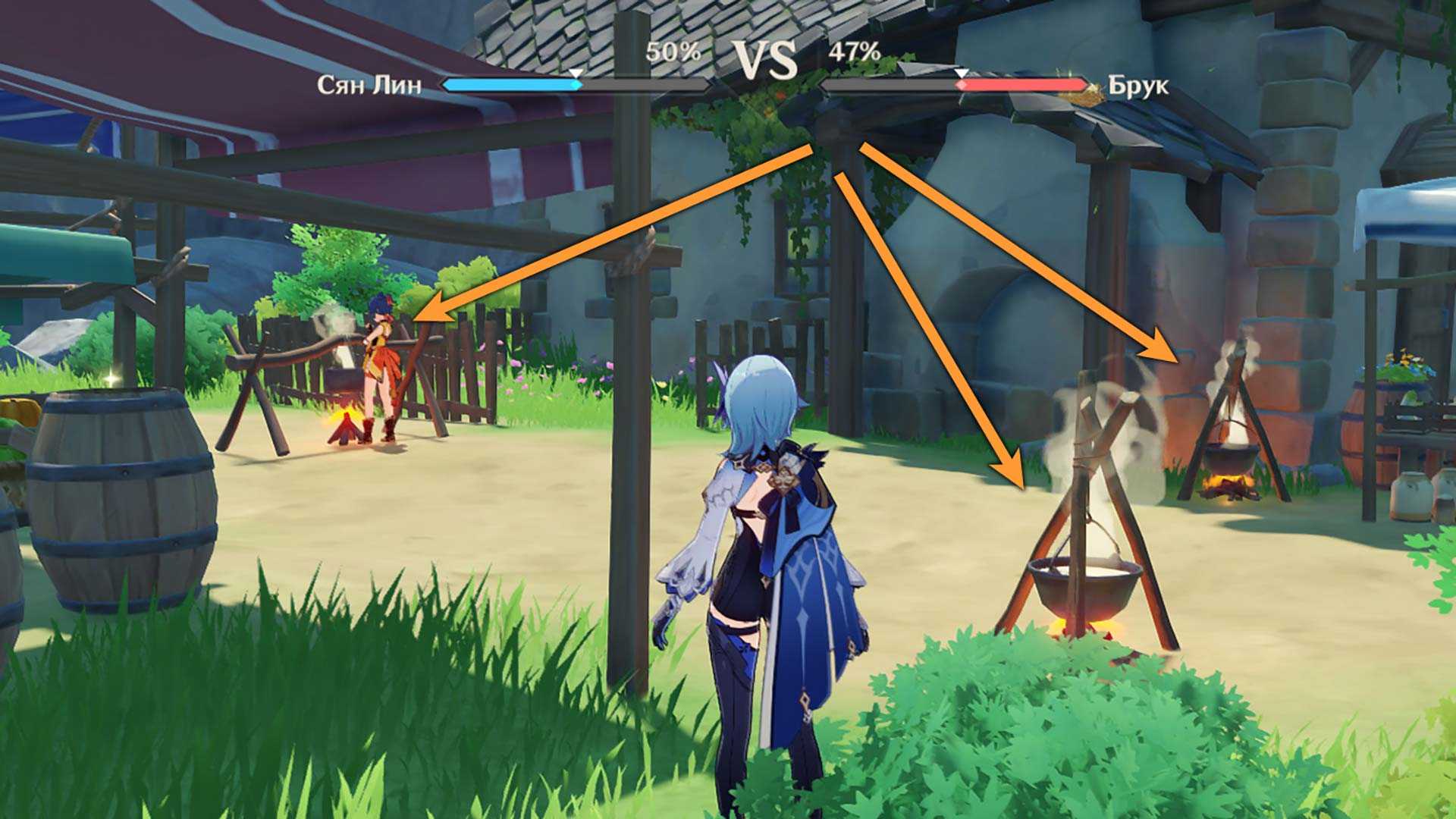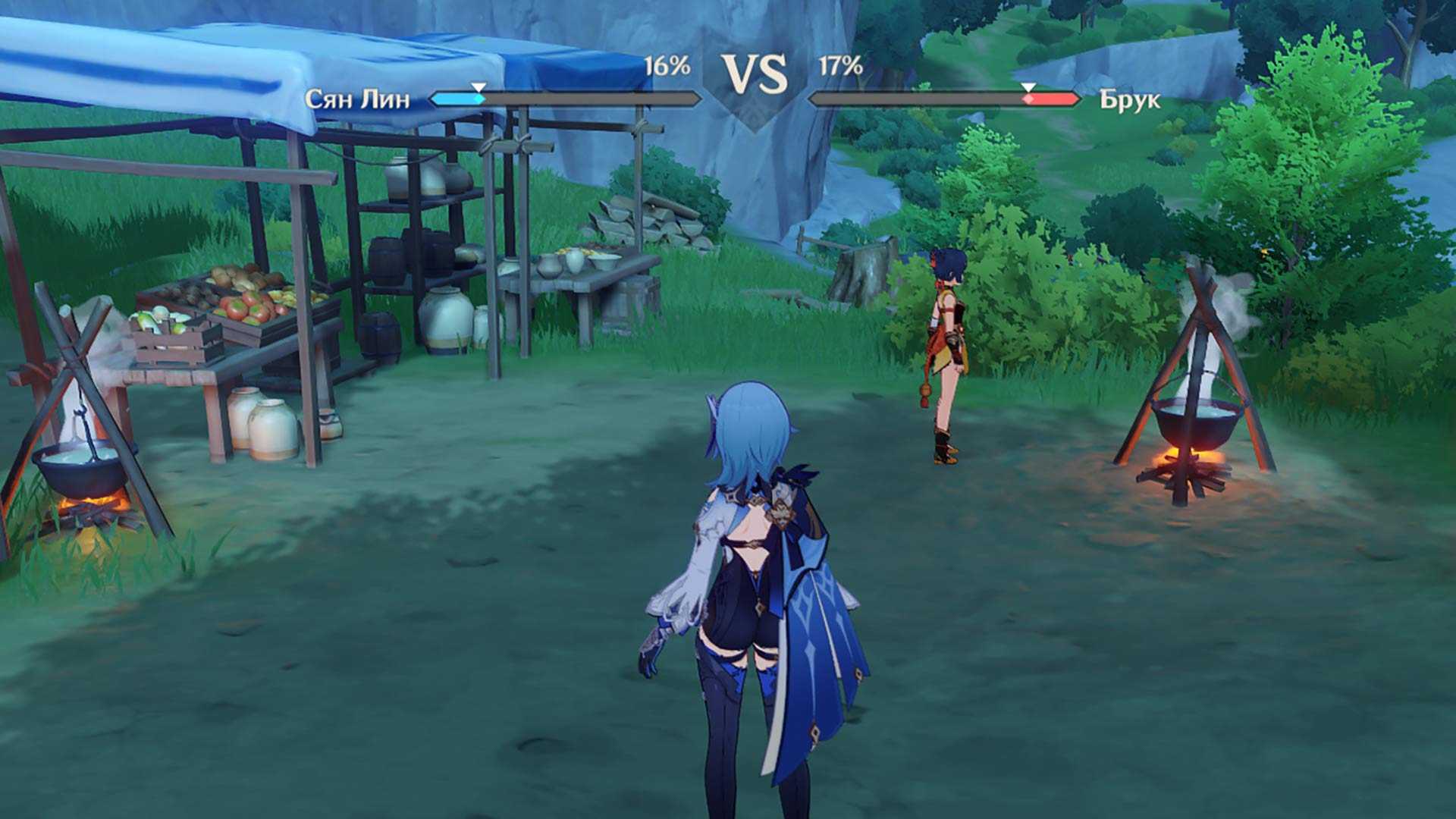 Во время поединка на экране будет изображен прогресс Сян Лин и Брук. Если Брук быстрее наберет 100%, поединок начнется заново, то есть Брук победить не сможет в любом случае.